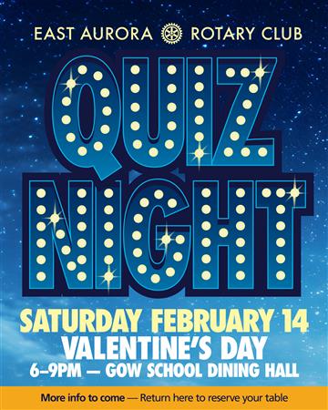 Each February, the East Aurora Rotary Club hosts a sold-out, standing room only event like no other — Our annual QUIZ NIGHT is held at the Gow School and comprises 30+ teams of 6 inspired trivia masters.